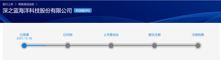 上证报中国证券网讯(年悦记者张雪)上交所官网12月26日显示长胜证券,深之蓝海洋科技股份有限公司(下称“深之蓝”)向上交所提交的科创板IPO获受理。本次深之蓝拟募资15亿元,拟用于水下机器人生产基地扩建项目、水下机器人技术研究及实验中心升级项目及补充流动资金。